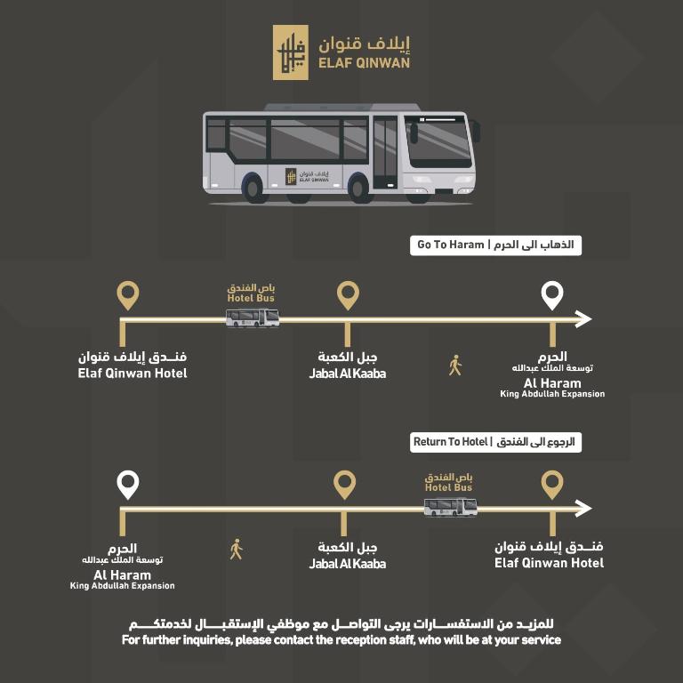 يقع فندق Elaf Qinwan Hotel في موقع مميز بمدينة مكة المكرمة على بُعد 4.5 كم من المسجد الحرام، ليمنح ضيوفه تجربة إقامة تجمع بين الراحة وسهولة الوصول إلى أهم المعالم المقدسة.